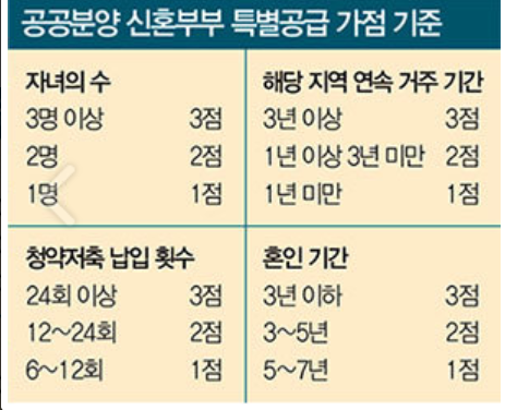 <목차>1. 신혼부부특별공급 자격 조건2. 신혼특공 소득기준3. 신혼특공 가산점