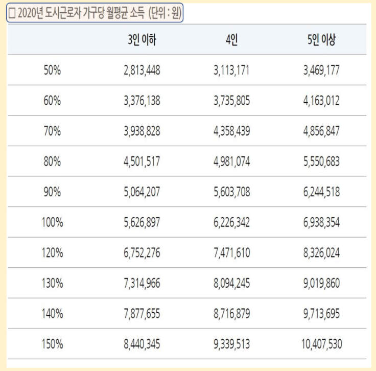 - 소득 기준은 월소득이며, 세전 기준입니다.