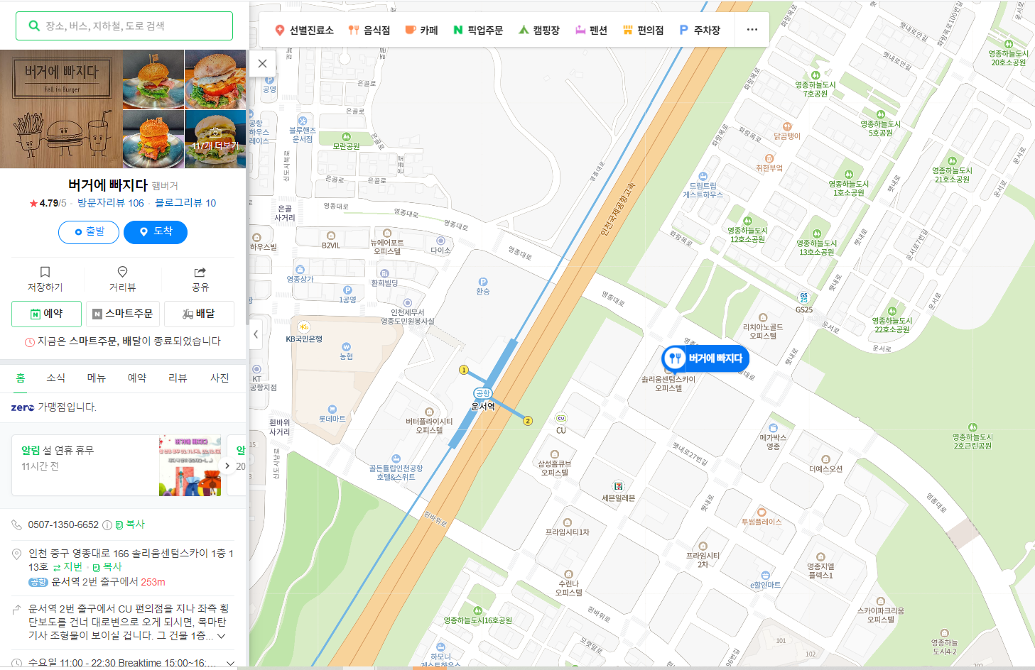 영종도 수제버거 맛집 운서역 버거에빠지다 : 위치/주차 정보/영업시간
