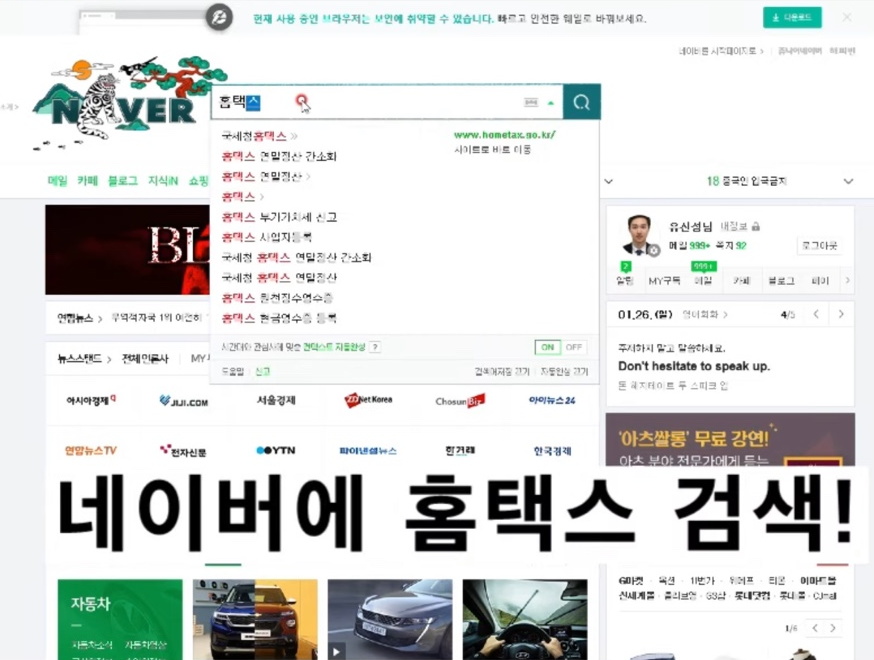① 네이버에 홈택스 검색 후 사이트 접속