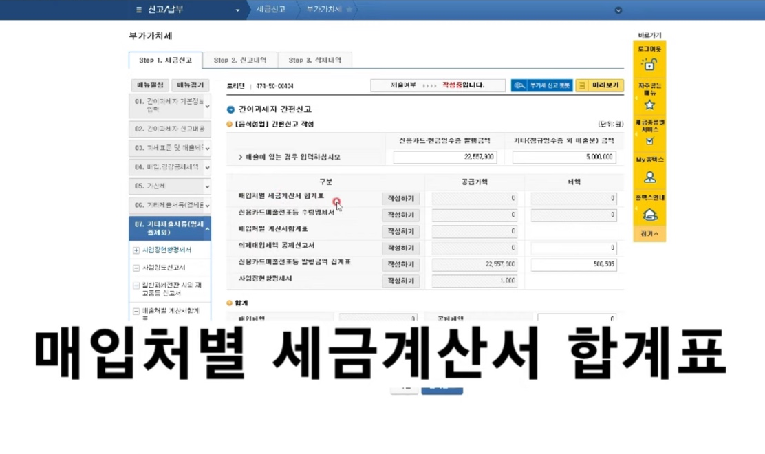 ⑦과세표준매출세액/공제세액/가산세 등 입력