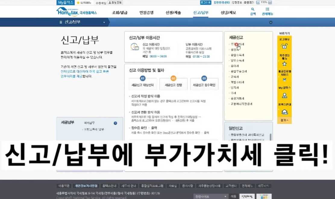 ②신고/납부 → 부가가치세 클릭