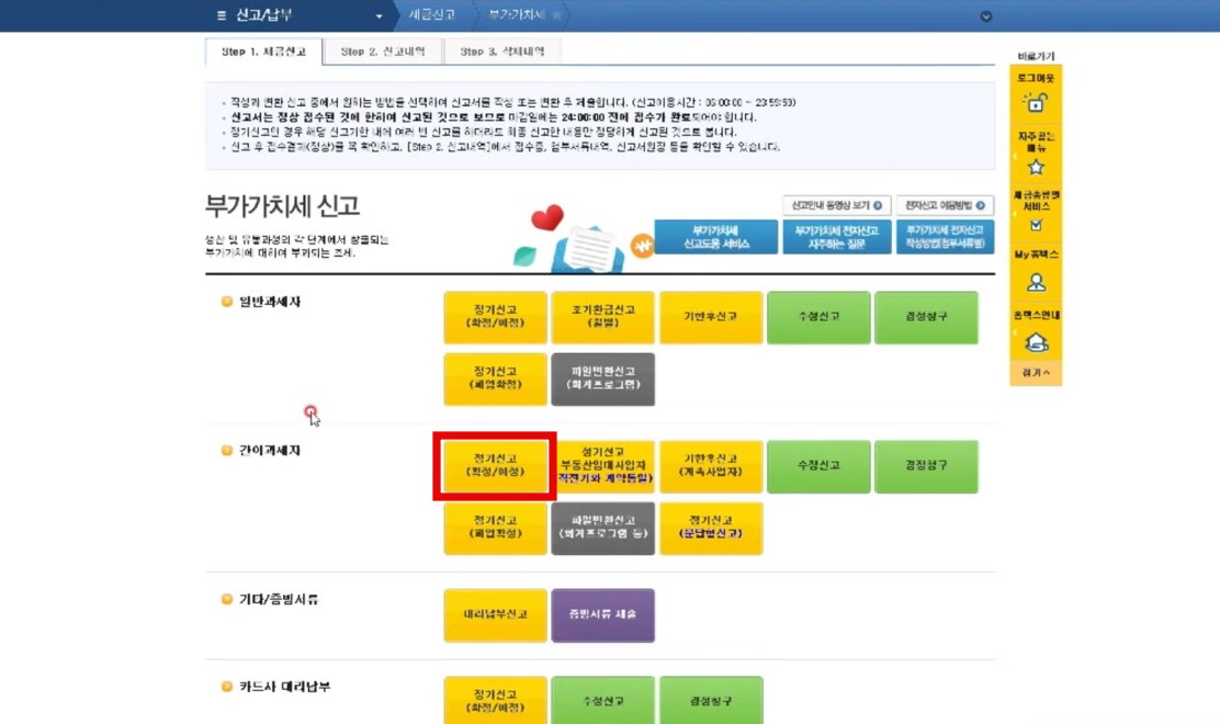 ③간이과세자 → 정기신고 클릭