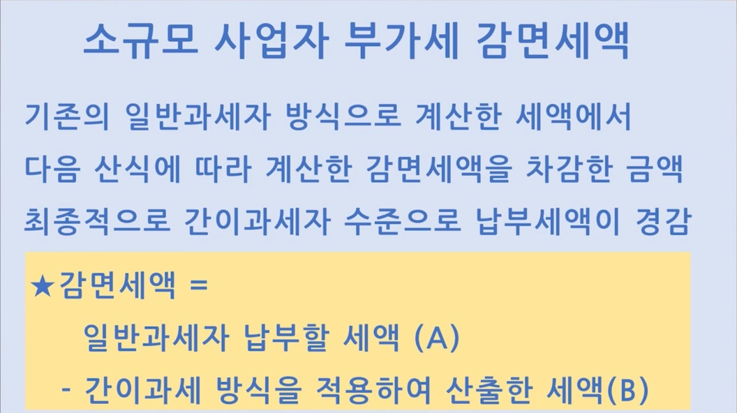 일반과세자이면서 연매출 8,000만원이 넘지 않는분들은, 아직 간이과세자로 전환되지 않았기 때문에 그만큼 부가세를 감면해줍니다.