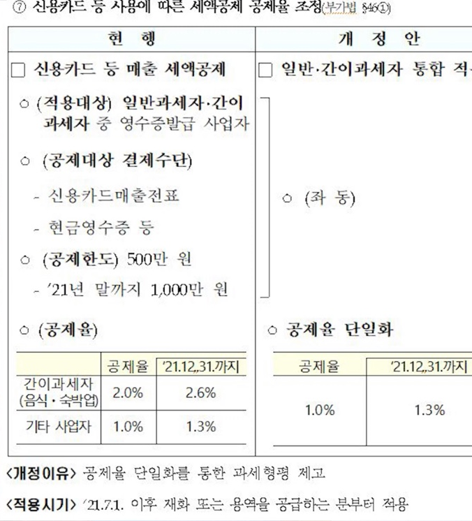 신용카드를 통한 매출의 세액공제율이 일반과세자와 간이과세자에게 동일하게 적용됩니다.