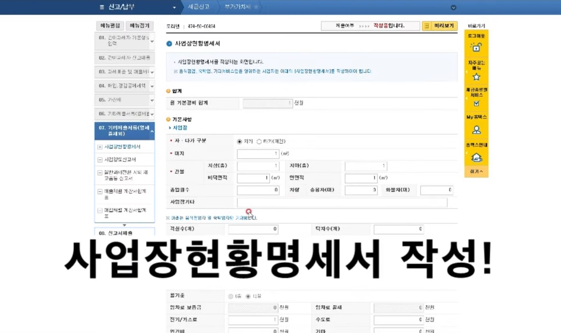 ⑥사업장현황명세서 작성