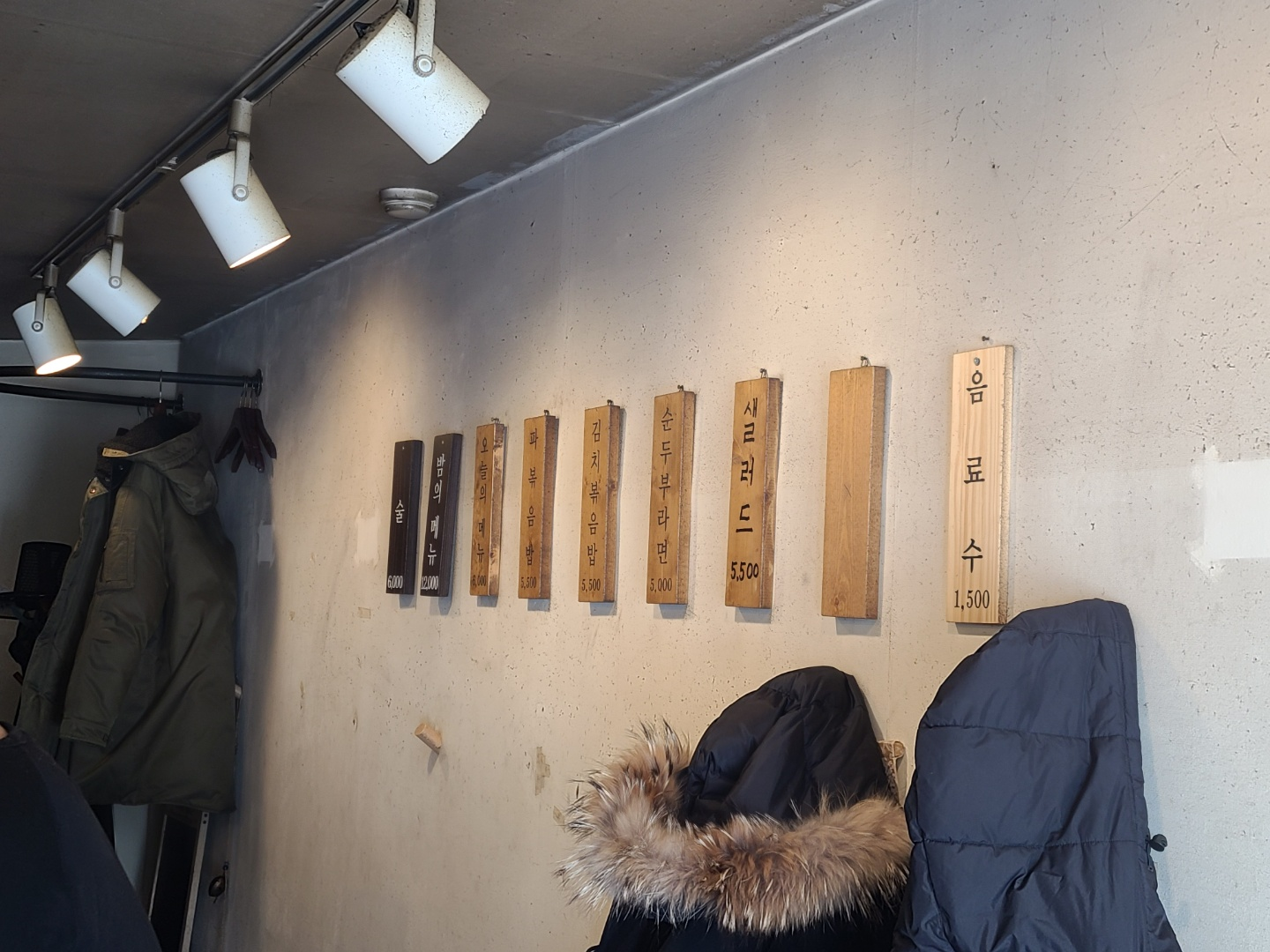 오늘의 메뉴와 파볶음밥, 김치볶음밥, 순두부라면, 샐러드 총 5가지 메뉴입니다. 오늘의 메뉴만 6천원이고, 나머지는 5천5백원입니다.