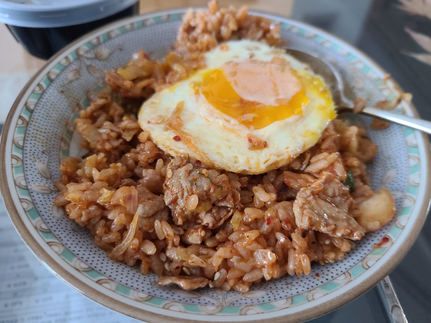 김치볶음밥도 한번 포장해서 먹었는데요. 이 김치볶음밥도 불맛이 장난 아니었습니다. 돼지고기도 큼지막하게 들어가서 좋았습니다. 개인적으로는 파볶음밥보다 더 맛있는 것 같습니다. 따로 퍼서 먹었는데, 이 양만큼 남아있어서 두끼를 먹어도 될만한 양이었습니다.