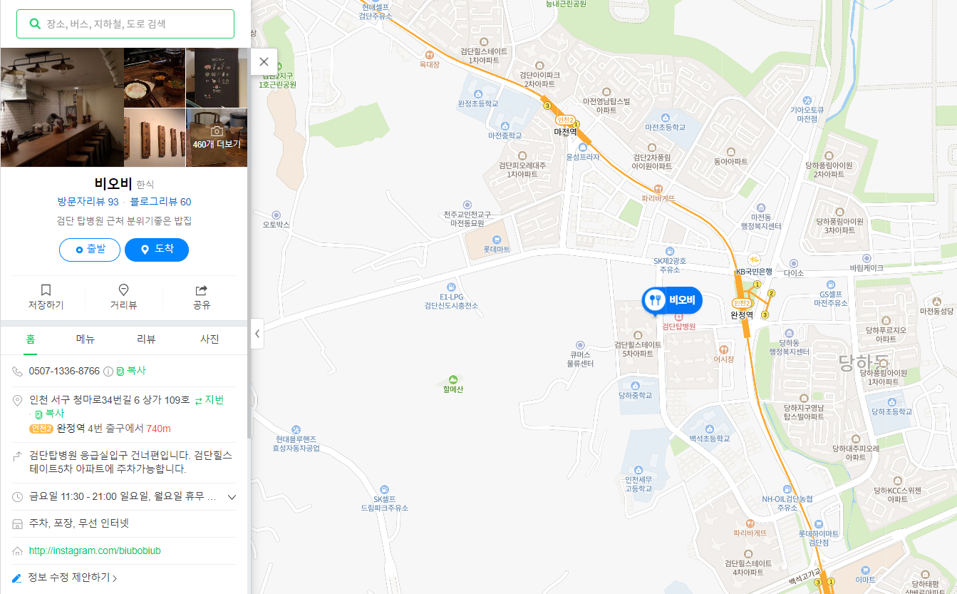 - 위치 : 당하동(인천 서구 청마로34번길 6 상가 109호)