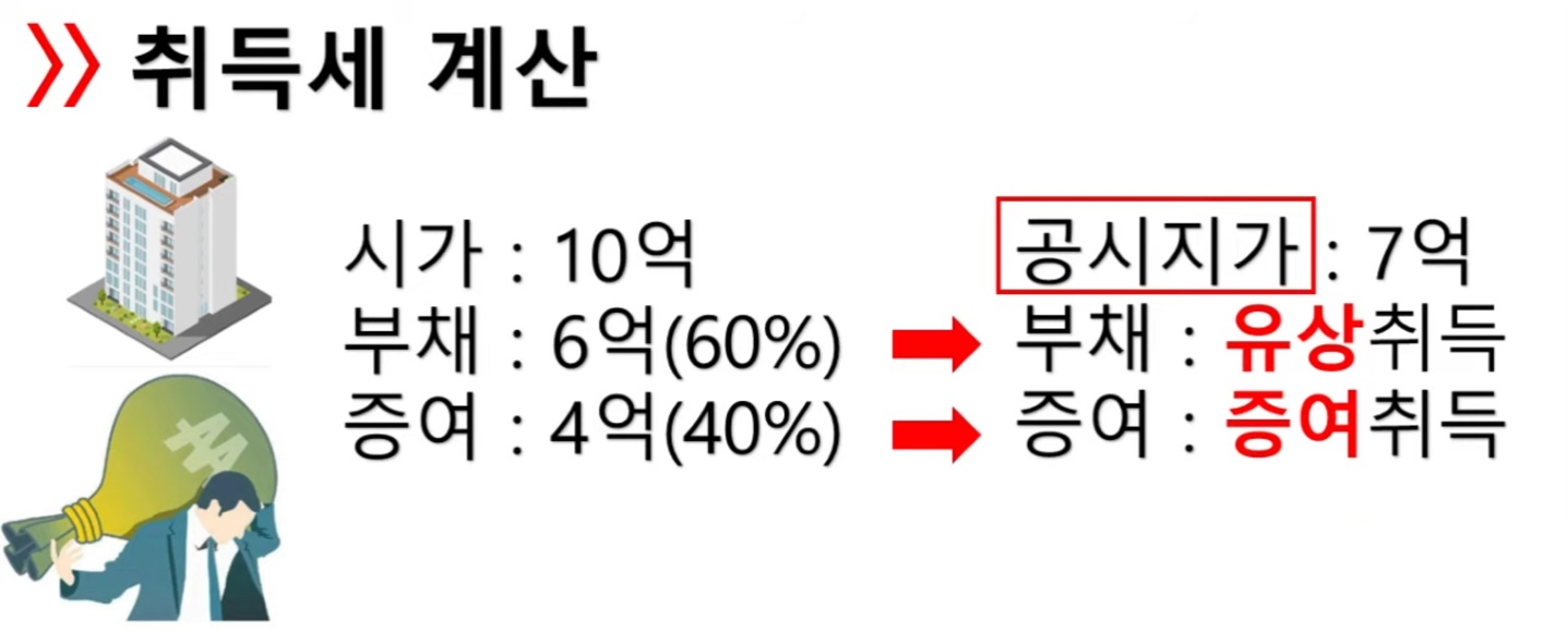 하지만 부담부증여의 부채에 대해서 증여취득으로 보지 않는데요. 따라서 낮은 취득세율을 적용받을 수 있습니다.