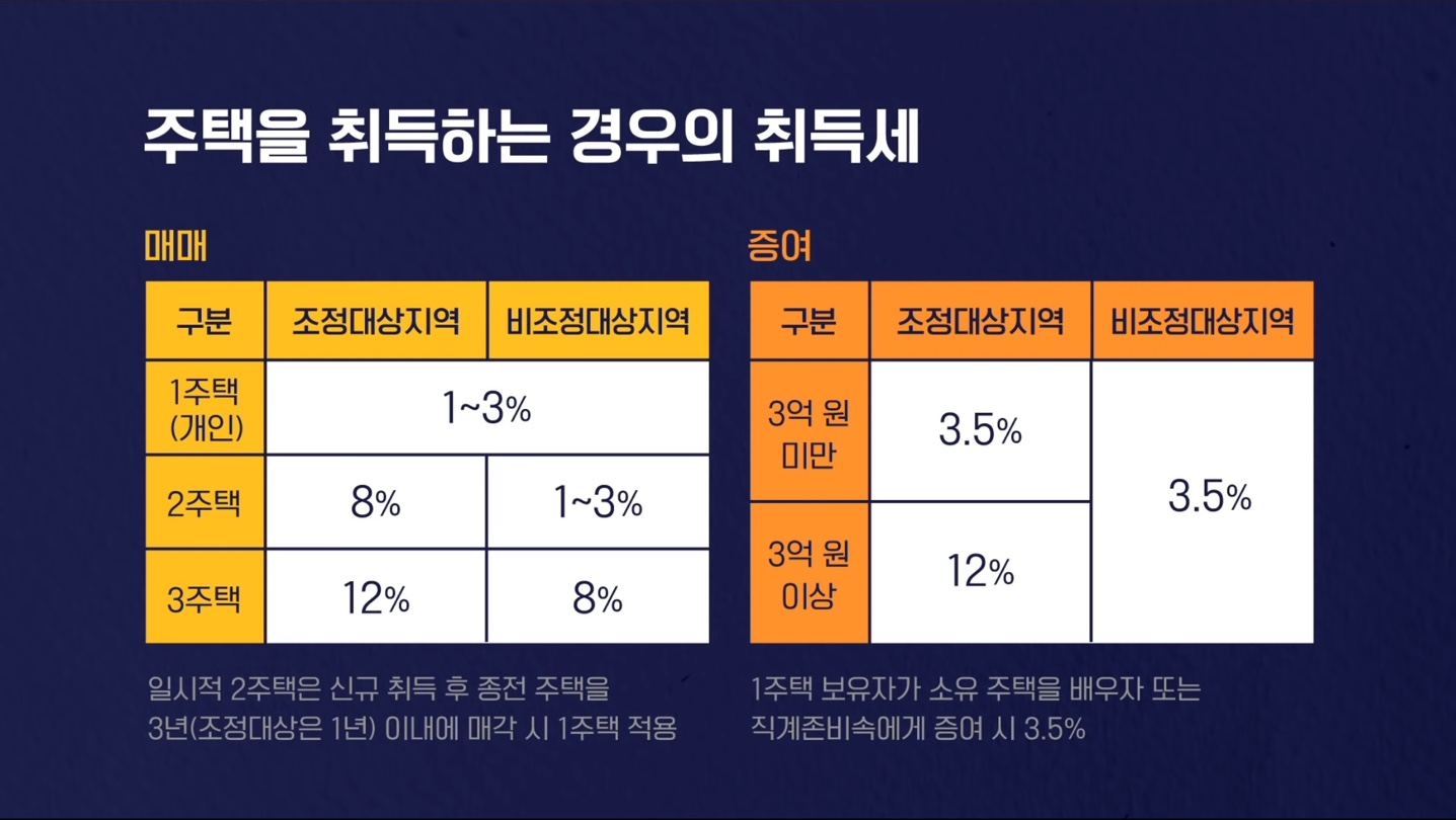 위의 표처럼, 주택을 매매로 취득할때보다, 증여로 취득할 경우 취득세율이 높게 적용됩니다.