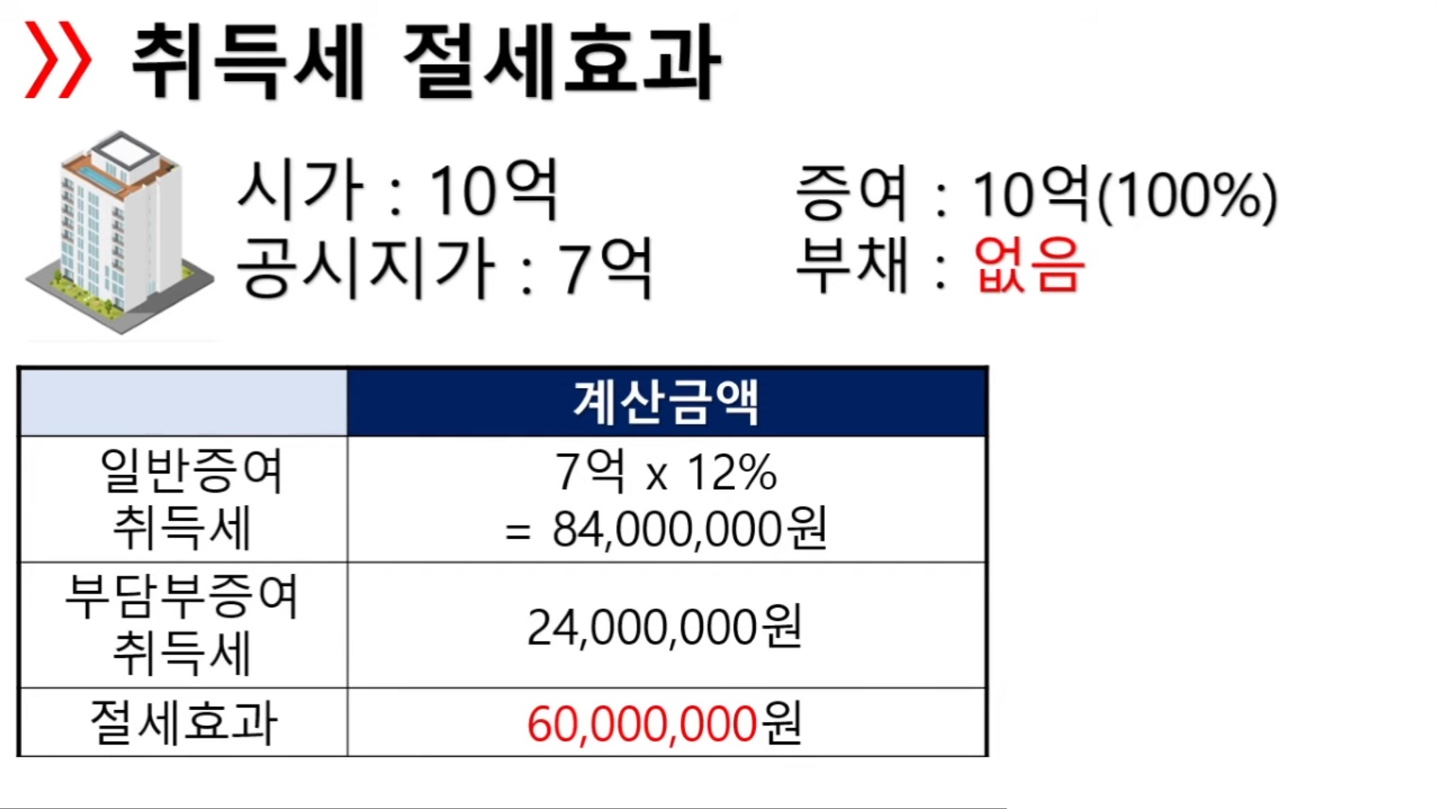 하지만 부담부증여의 부채에 대해서 증여취득으로 보지 않는데요. 따라서 낮은 취득세율을 적용받을 수 있습니다.