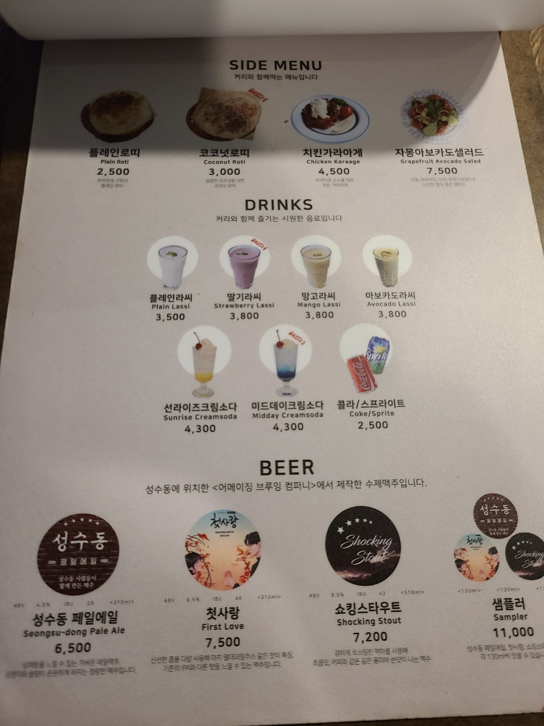 광화문 카레 맛집 고가빈커리하우스 : 가격(메뉴판)