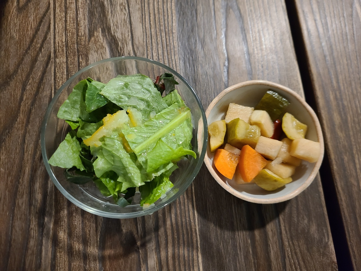 음식을 시키면 조그만 샐러드와 피클을 주십니다.