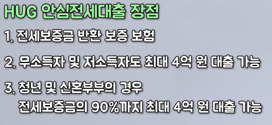 두번째 장점은 무소득자 및 저소득자도 최대 4억원까지 대출 가능하다는 것입니다. 또한, 목돈이 없는 청년 및 신혼부부의 경우 전세보증금의 90%까지 대출이 가능합니다.