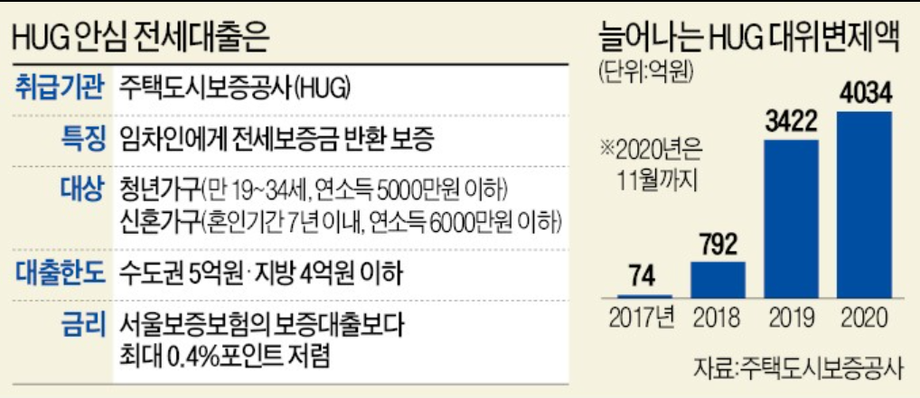 2.HUG 안심전세대출의 조건 및 가능 금액