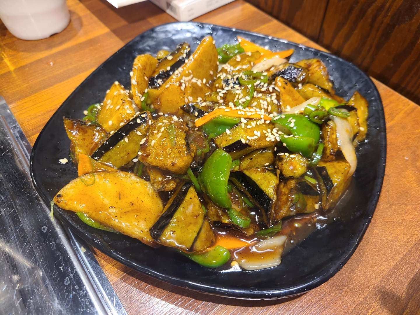 땅에서 나오는 3가지 신선한 재료를 매콤하게 볶는 음식이 지삼선입니다. 감자, 가지, 피망이 메인 재료입니다. 약간 매콤하면서 달달한맛도 나는 소스였습니다. 살짝 매운 양념치킨 소스의 느낌도 있었습니다. 저는 아주 맛있게 먹었습니다.