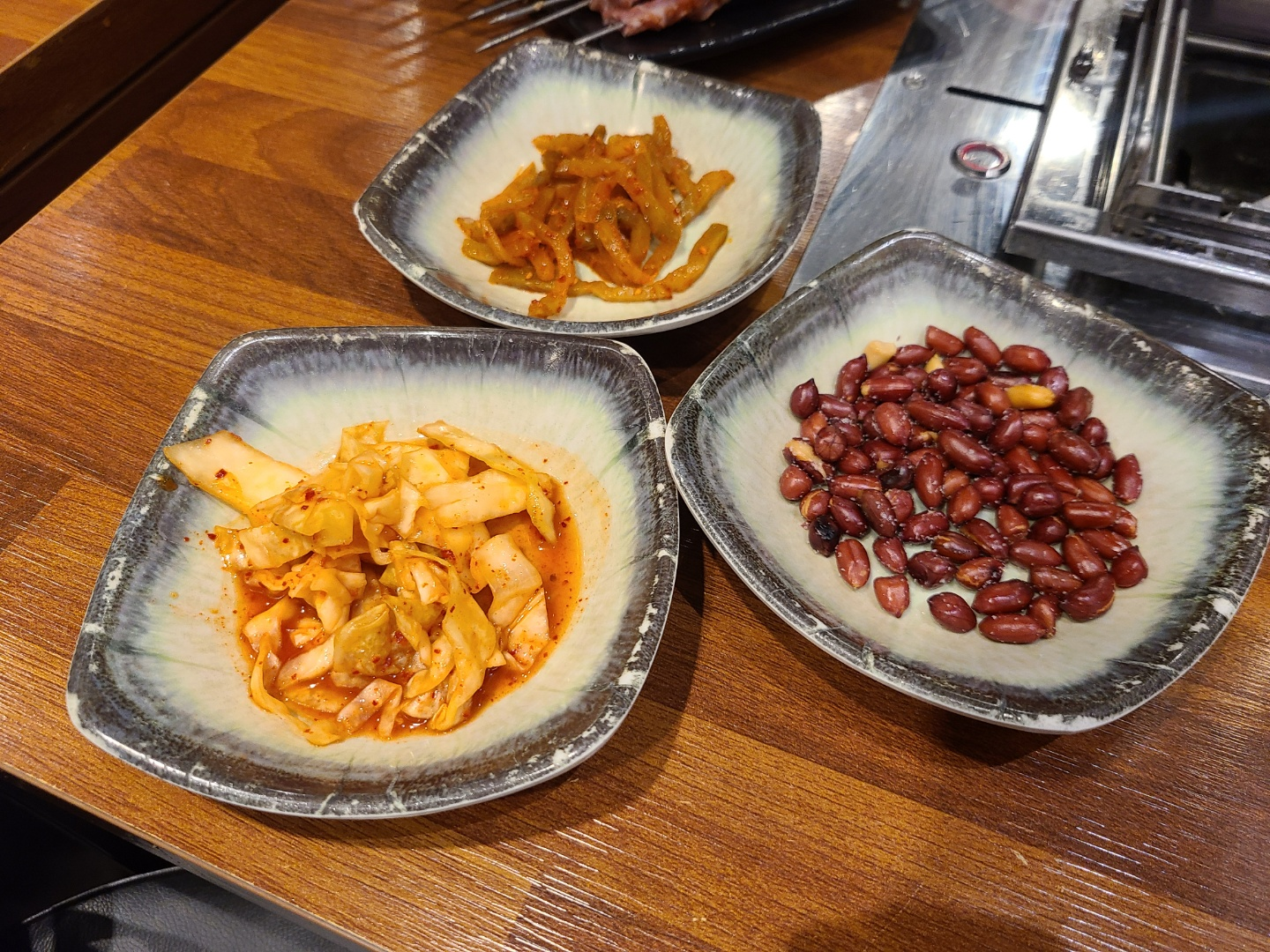 밑반찬은 짜사이, 땅콩볶음, 양배추김치 3가지가 나옵니다. 평범한 맛입니다.