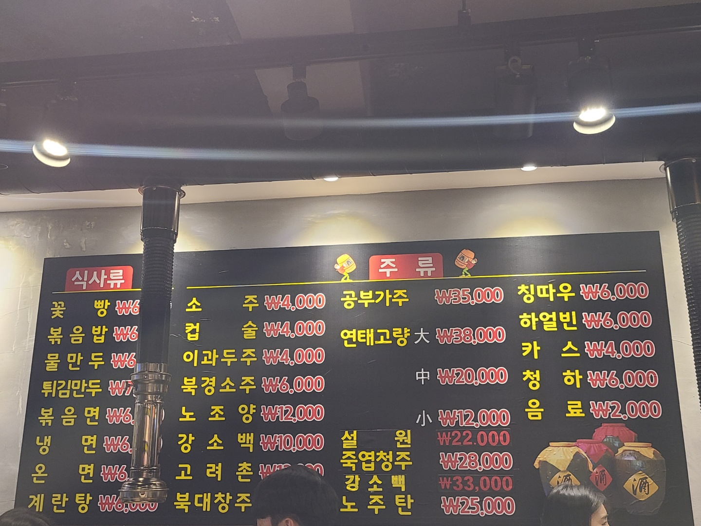왕십리 양꼬치 맛집 동방양꼬치 : 가격(메뉴판)