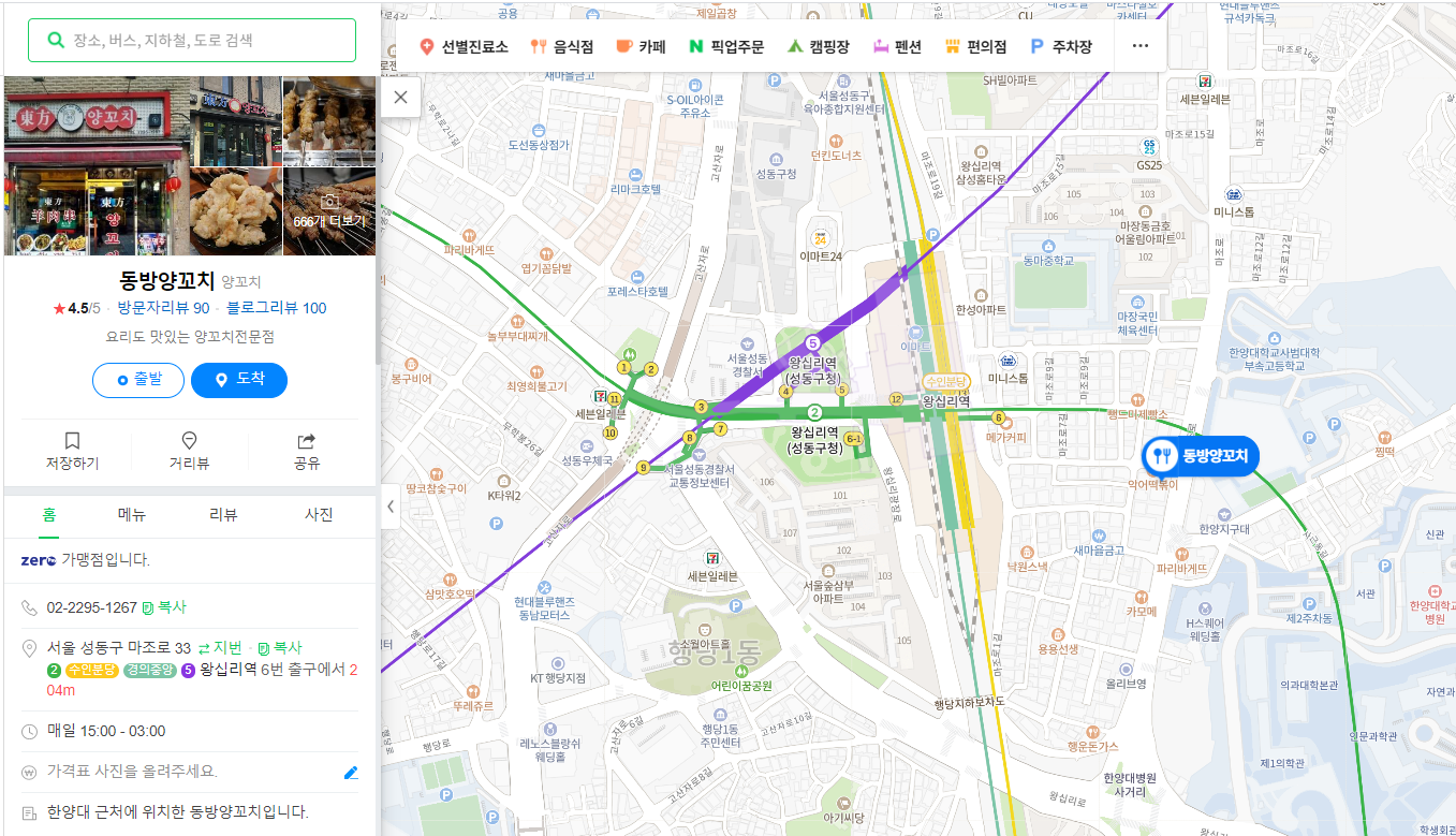 동방양꼬치는 서울지하철 2호선 왕십리역 6번 출구에서 도보 10분 거리에 있습니다.