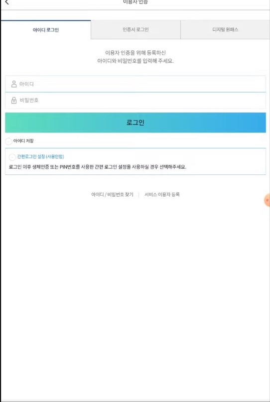 로그인을 하시고, 사전 준비물을 확인합니다. 본인명의 공동인증서(구 공인인증서)가 모바일에 있어야 합니다. 만약 공동인증서가 없으시다면 은행어플을 통해 받으실 수 있습니다.