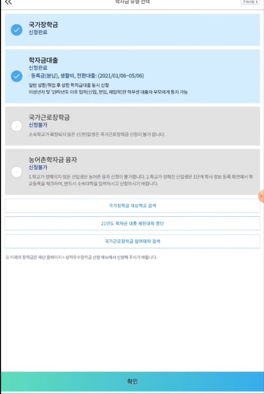 따라서, 1유형에 꼭 신청하셔야 2유형 장학금의 수혜를 받을 수 있습니다. 저 같은 경우는 대학생시절 1유형에 신청한 후, 학교에서 2유형까지 지원해줘 학비 전액의 장학금을 받을 수 있었습니다.
