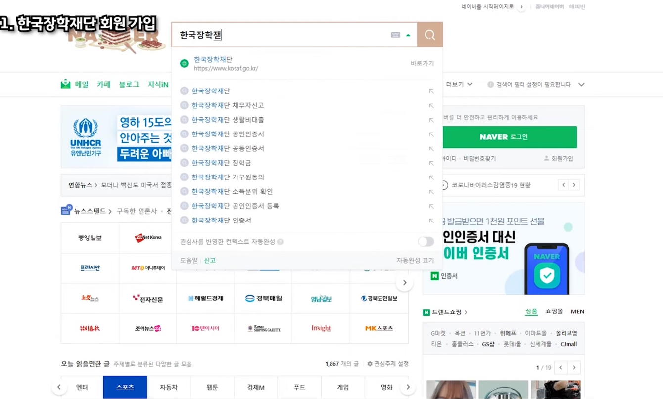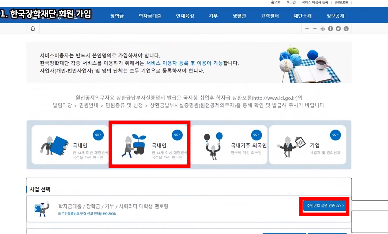 ①한국장학재단 회원 가입