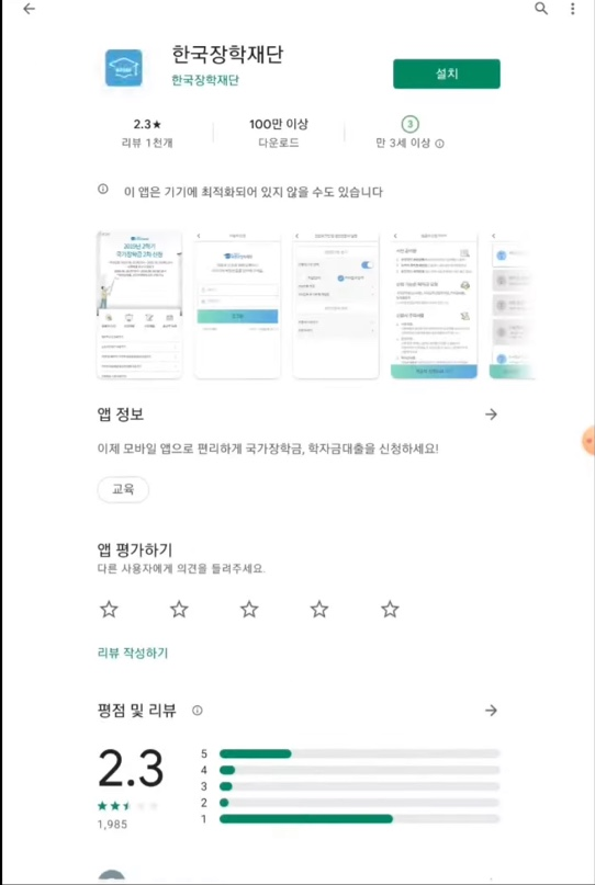 만약 회원가입이 이미 완료되었다면, 한국장학재단 앱을 설치하여 접속합니다. 앱에 들어가시면, 국가장학금 2차 메뉴가 활성화 되어 있을겁니다.