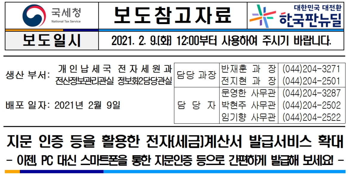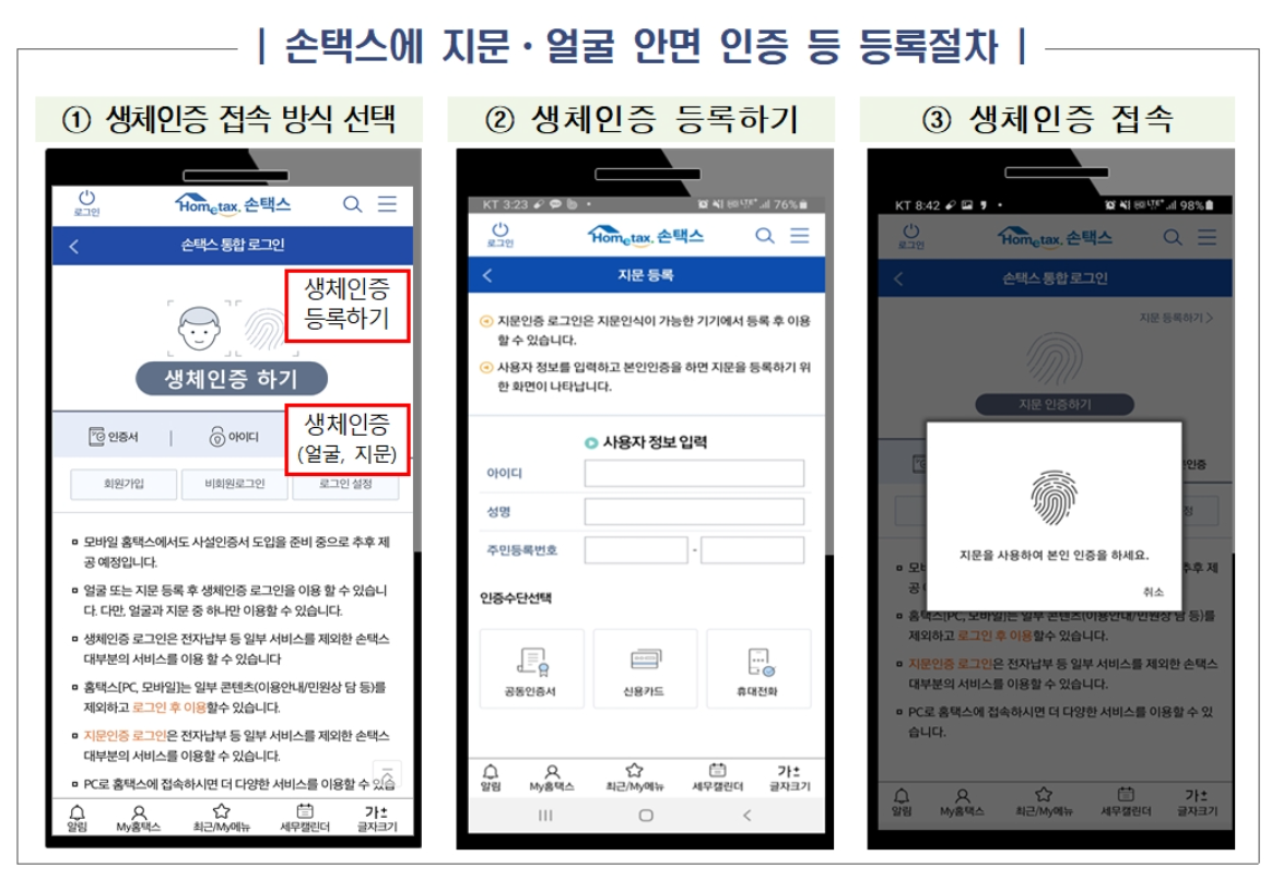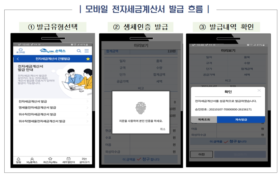 3. 모바일 전자세금계산서 발급 생체인증 서비스 시행(손택스)