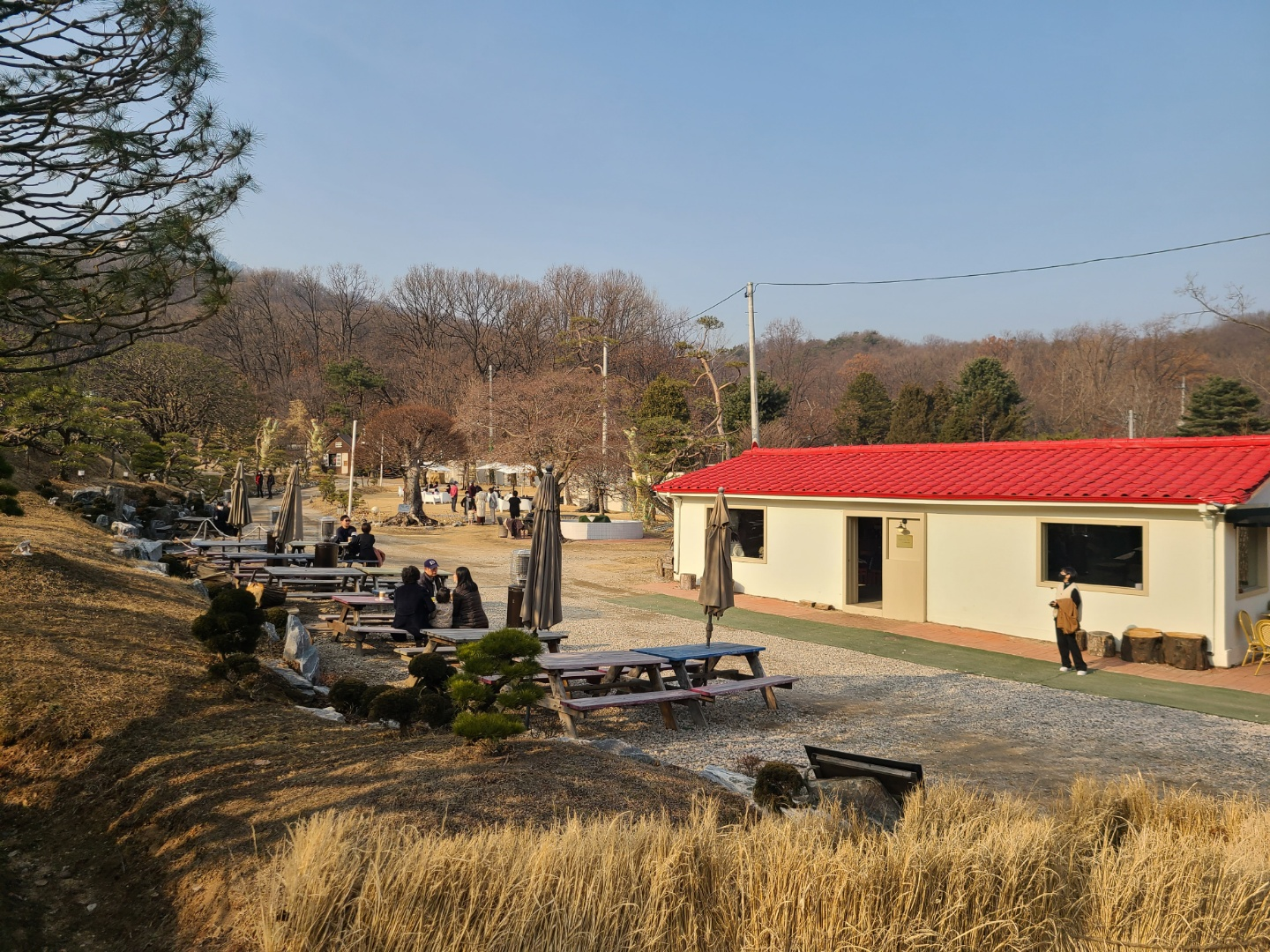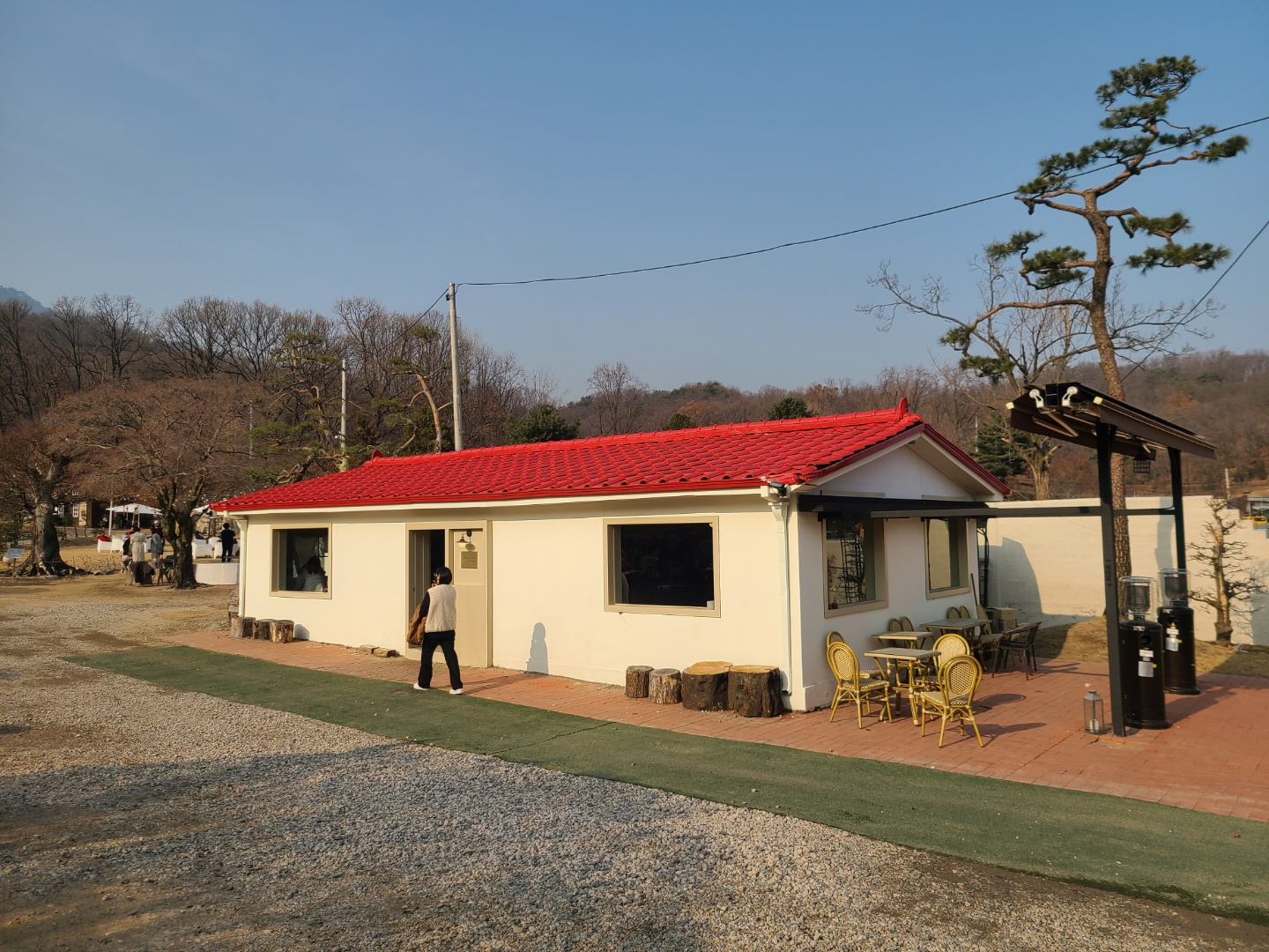 사진에 나온 언덕을 넘어가면, 붉은 지붕의 카페가 나옵니다.
