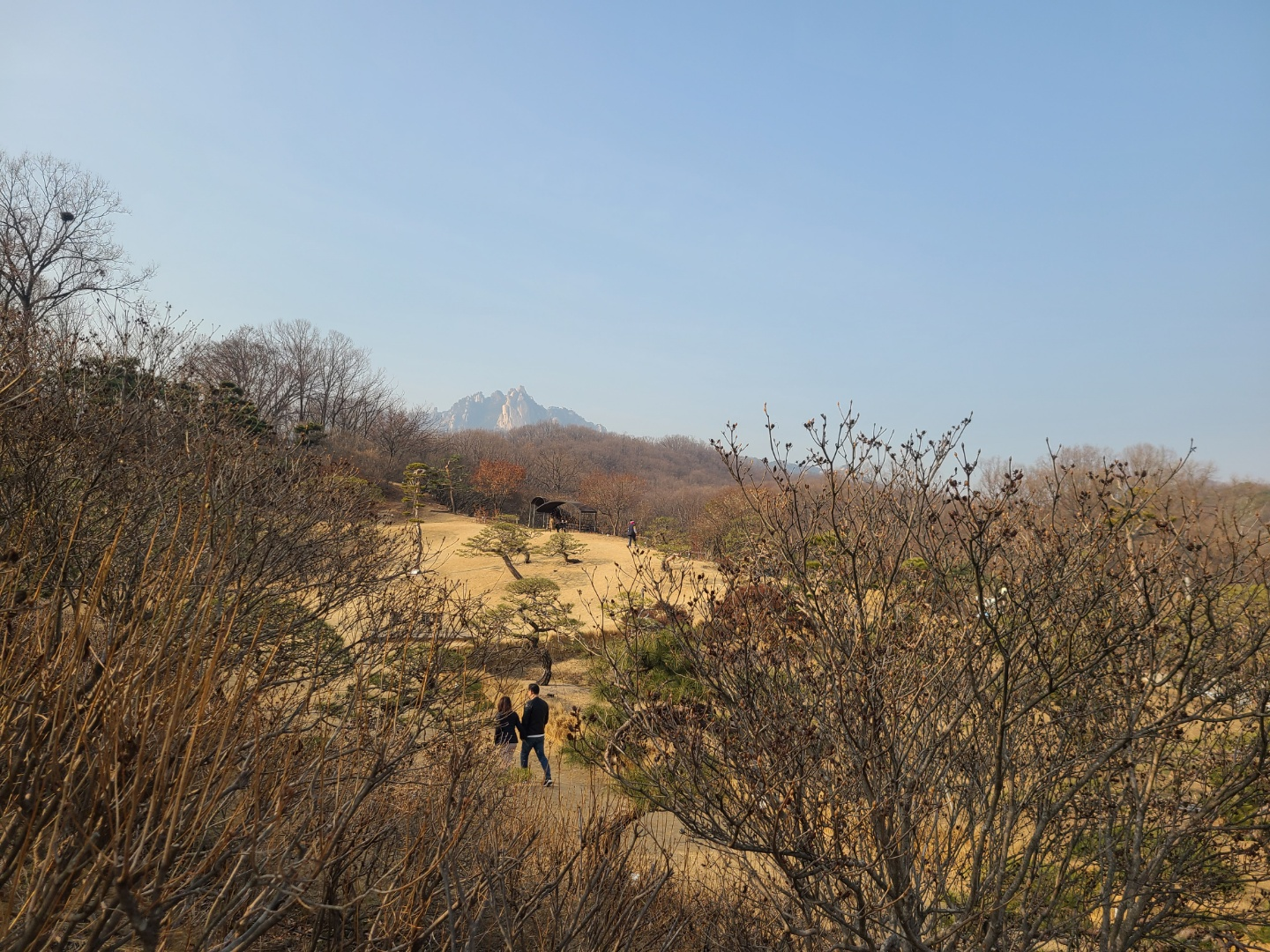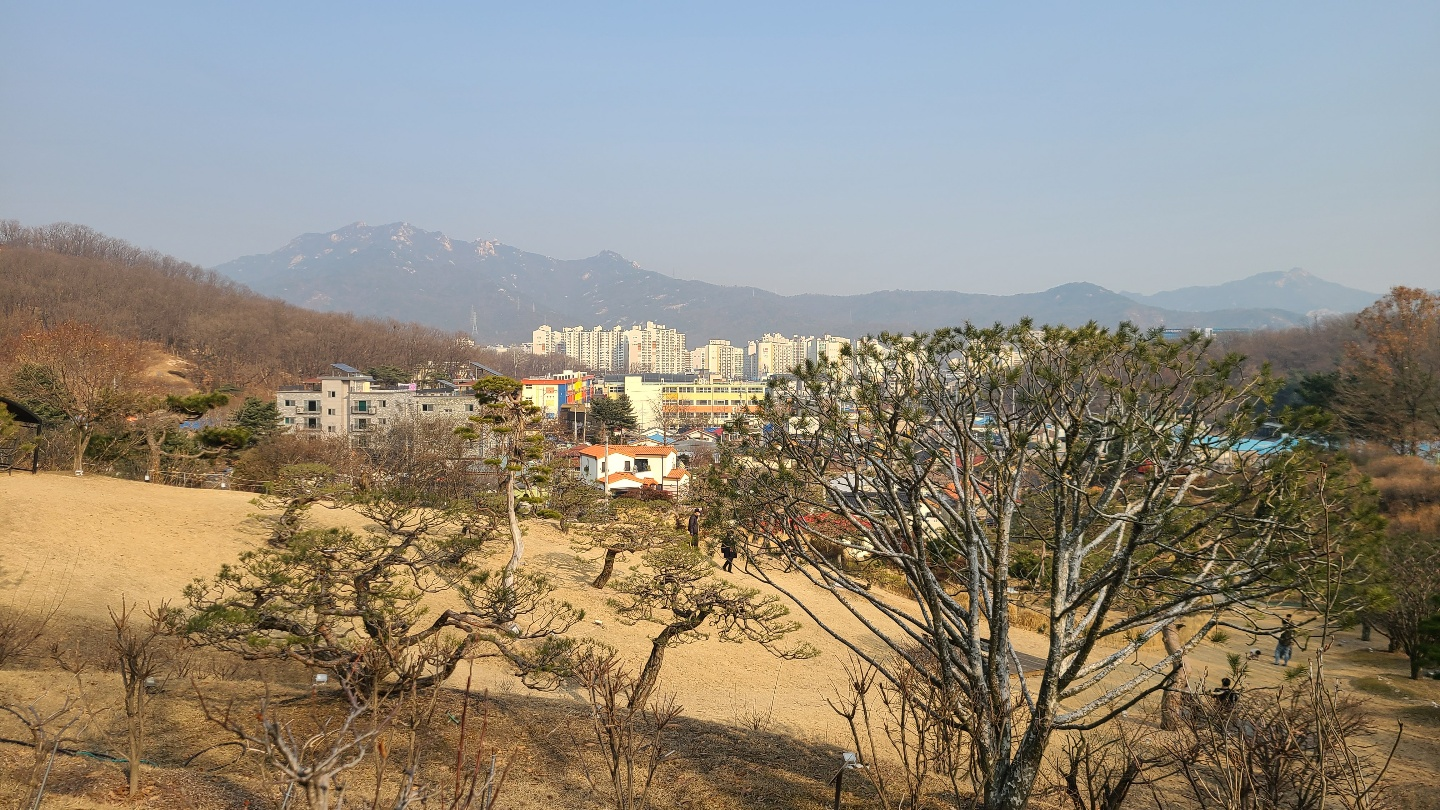 메이다이닝 정원 윗쪽에 올라가면, 도봉산 반대편으로 수락산이 보입니다. 미세먼지로 날이 좀 흐렸지만, 여기서 커피를 마시니 좋았습니다.