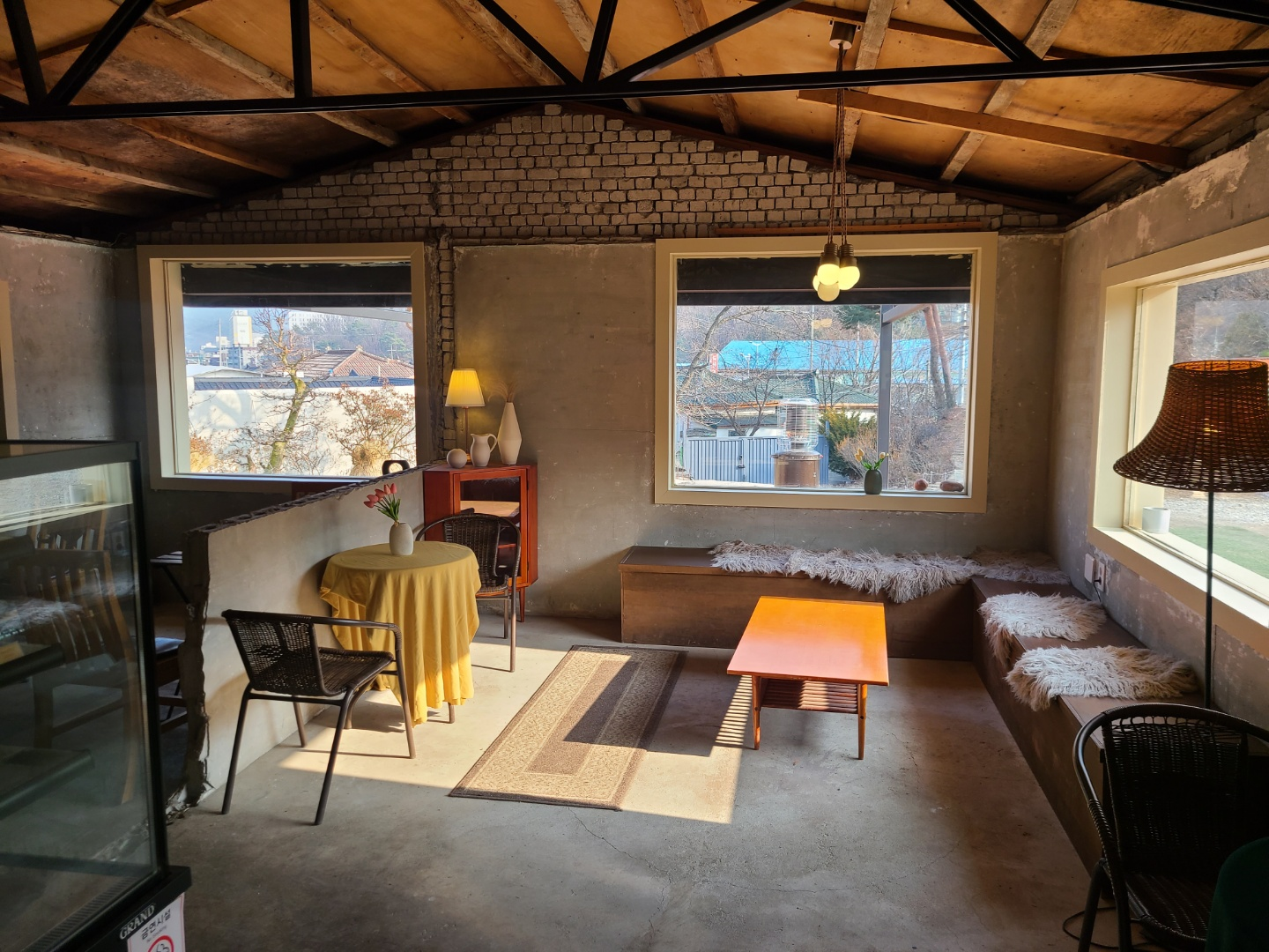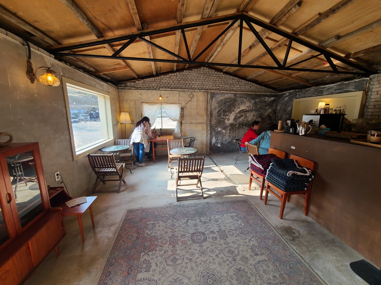 카페 내부도 아주 예뻤습니다. 통창도 나있고 야외에 나가는 손님들을 위해 담요도 준비되어 있었습니다.
