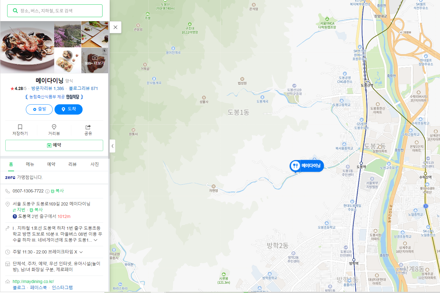 - 위치 : 도봉역(서울 도봉구 도봉로169길 202 메이다이닝)