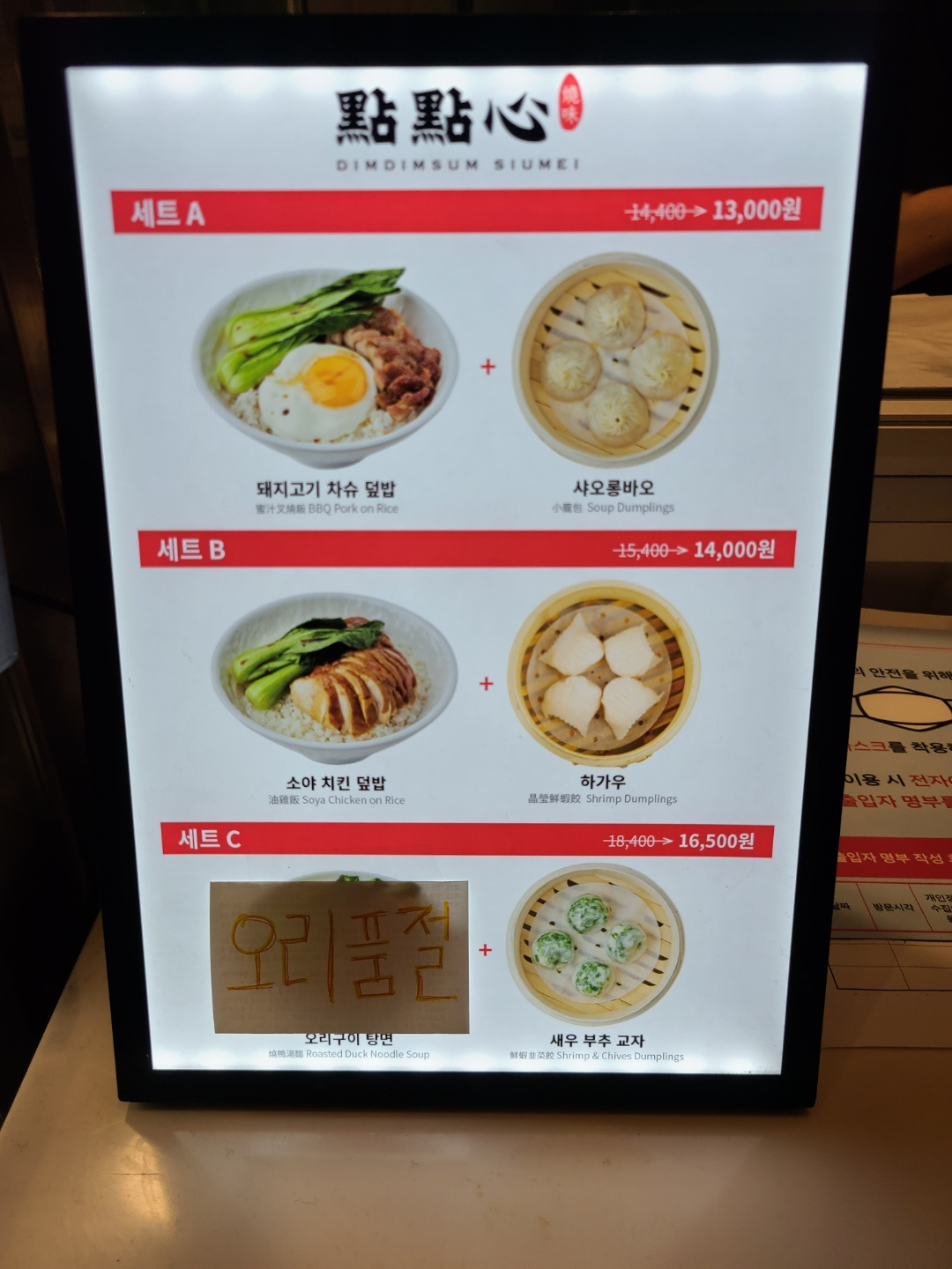 저는 기대가 너무 컸는지 많이 실망했습니다. 같이 갔던 친구는 부산에서 딤딤섬을 먹었었는데, 이정도는 아니었다고 합니다. 아무래도 푸드코트 형식인 분위기도 한목 했던 것 같습니다. 개인적으로는 재방문 의사가 적은 곳이었습니다.