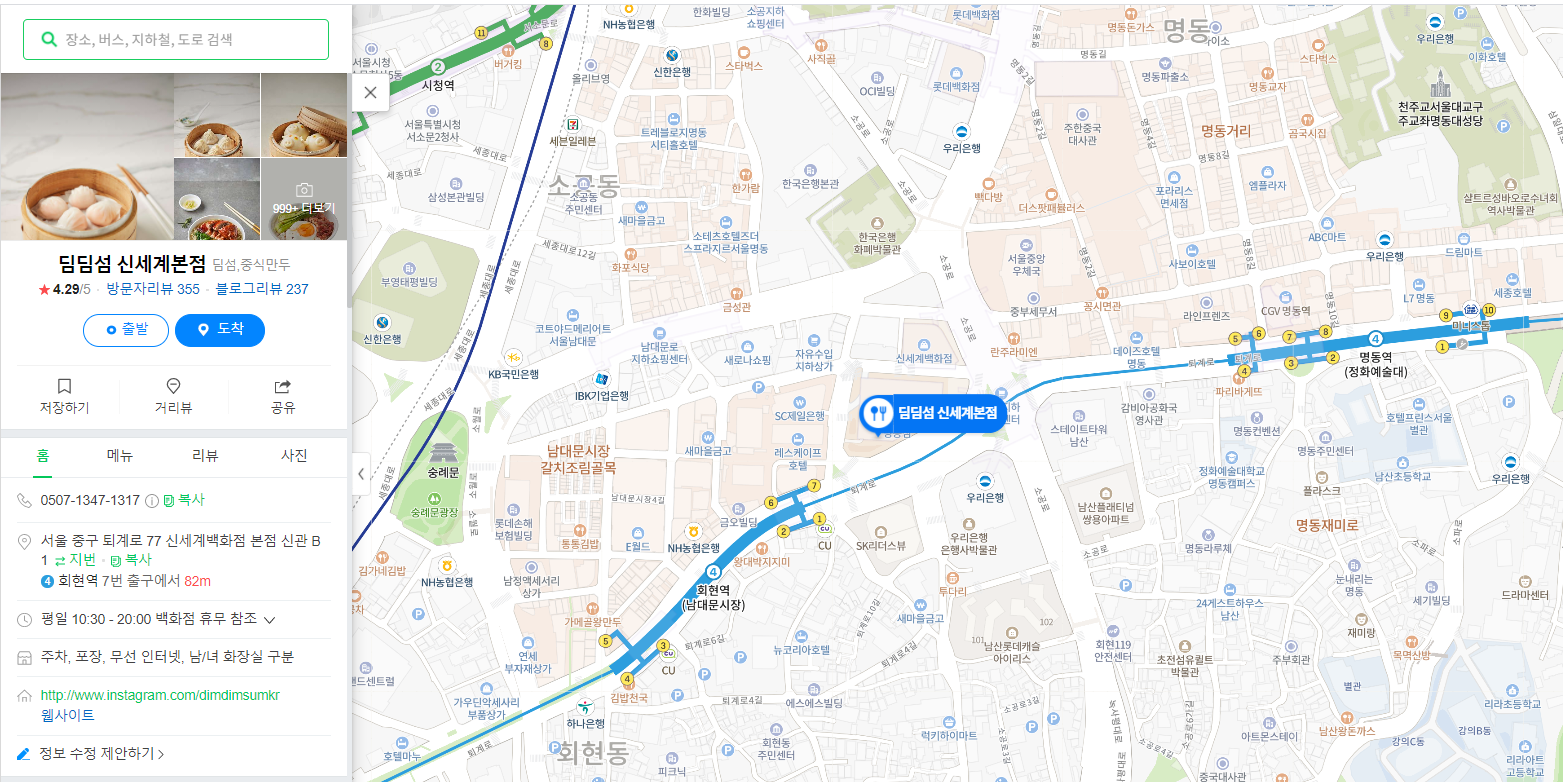딤딤섬 신세계본점은 신세계백화점 명동 본점의 B1F에 있습니다.