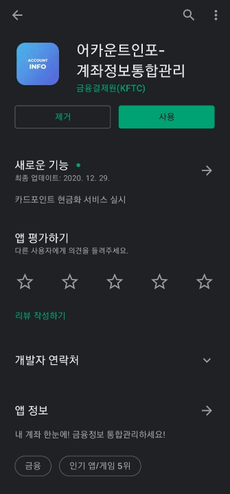 1) '어카운트인포 - 계좌정보통합관리' App을 다운 받고, 실행