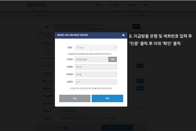 6) 포인트 선택 후 계좌번호와 입금 금액을 확인하고 확인