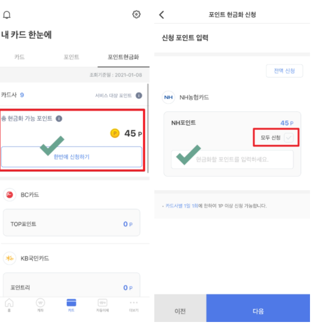 카드포인트 현금전환 방법