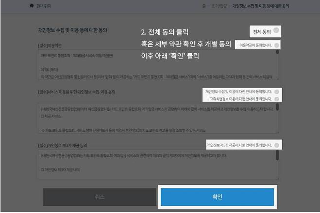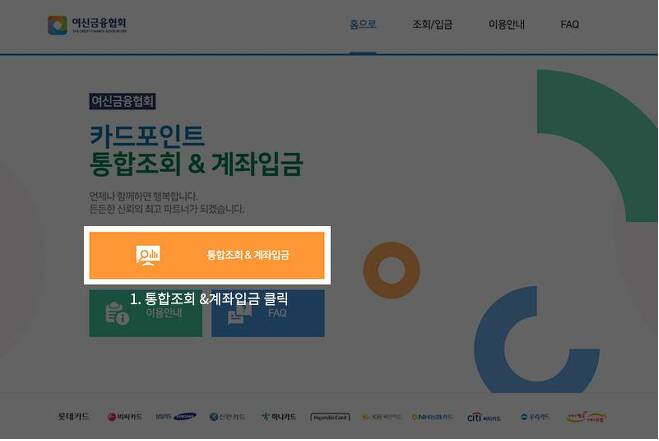 여신금융협회 카드포인트 통합조회 계좌입금