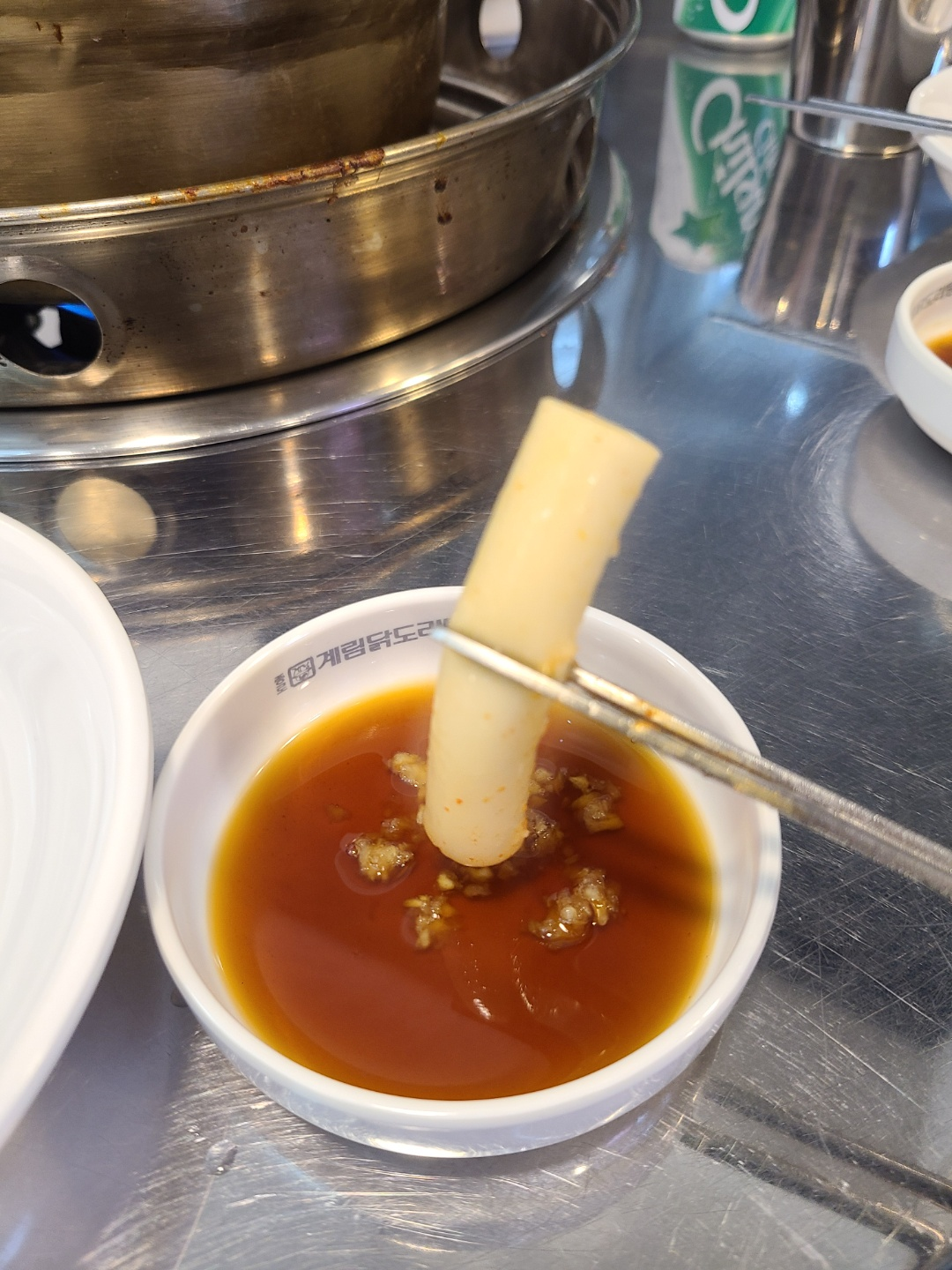 먼저 떡부터 건져 먹었습니다. 밀떡이어서 아주 부드럽고 쫀득했습니다. 간장에 찍어먹으면 간이 딱이었습니다.