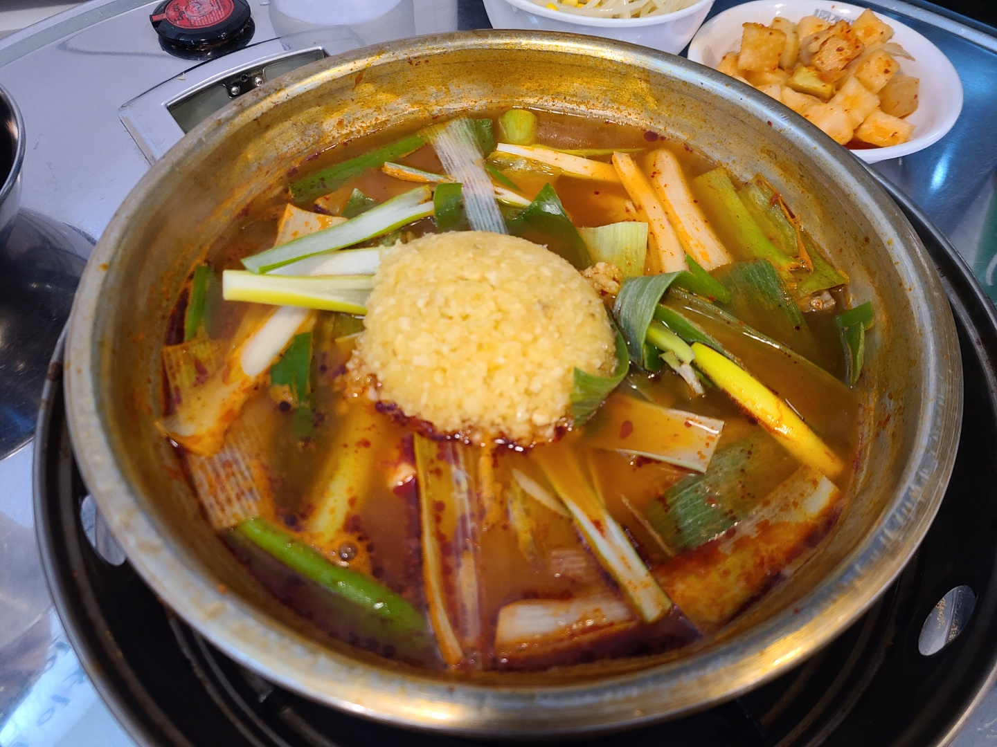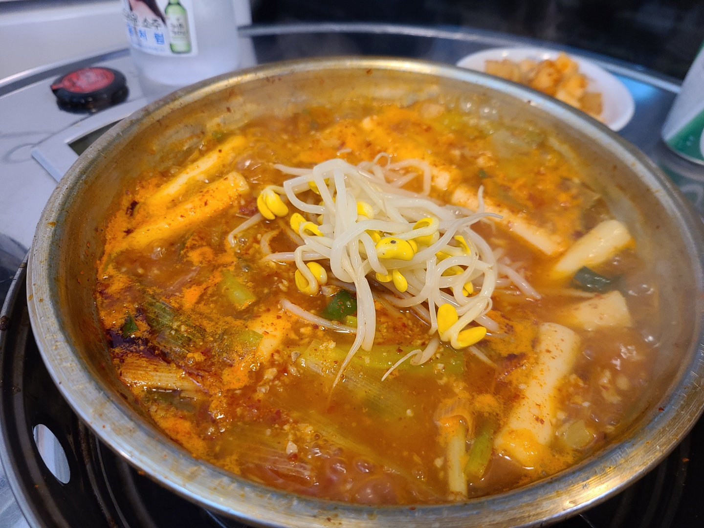 마늘이 밥공기에 잘 담겨서 뒤집어 나온 것처럼 엄청 많이 들어가 있습니다. 떡과 파도 많이 들어있었고, 국물이 많은 편이었습니다.