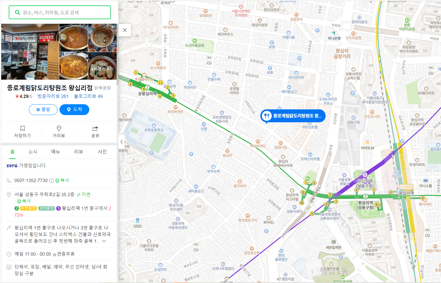 종로 계림 닭도리탕원조 왕십리점 후기 : 위치/주차 정보/영업시간