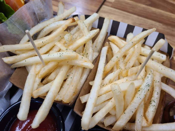 감자튀김은 정말 깨끗한 기름에 튀긴 것처럼, 아주 맑은 색깔이었습니다. 그냥 감자튀김이었습니다.