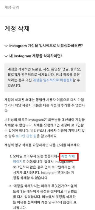 계정 삭제 페이지로 이동해야 합니다. 정말 번거롭게 만든 것 같습니다.