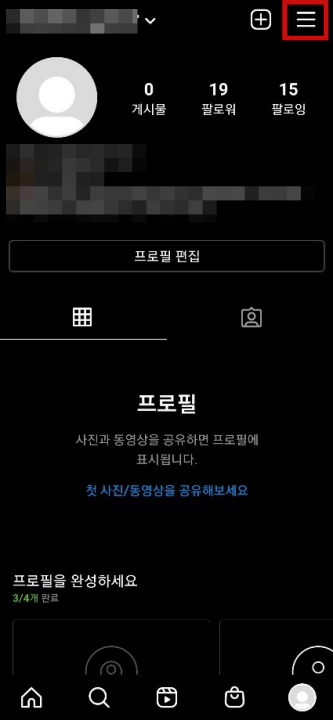 먼저 계정 삭제를 원하시는 인스타그램에 들어가야 합니다. 그리고 우측 상단에 3줄을 누릅니다.