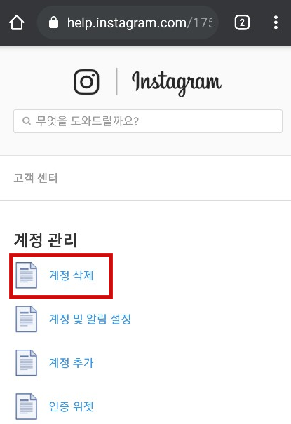 웹에서 인스타그램 고객센터로 들어오게 됐습니다. 이제 계정관리를 누릅니다.