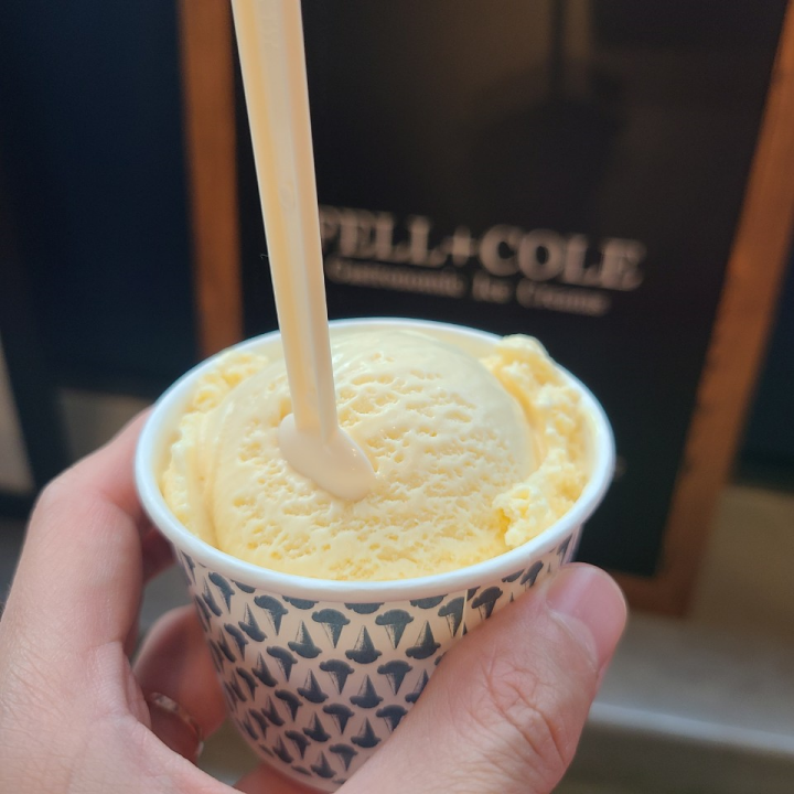 허니라벤더와 솔티드카라멜 맛 싱글로 시켰습니다. 작은 컵에 꽉 차게 담아주십니다.