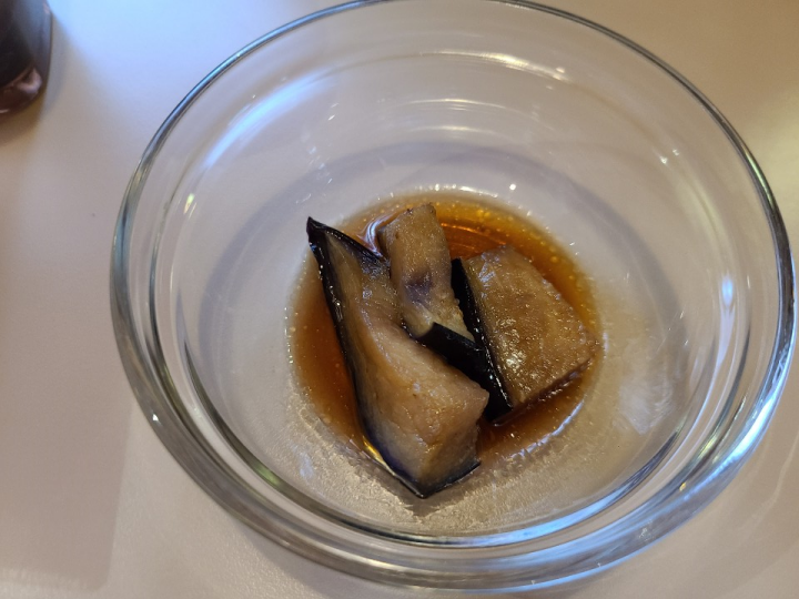 밑반찬으로 가지 간장 절임이 나옵니다.