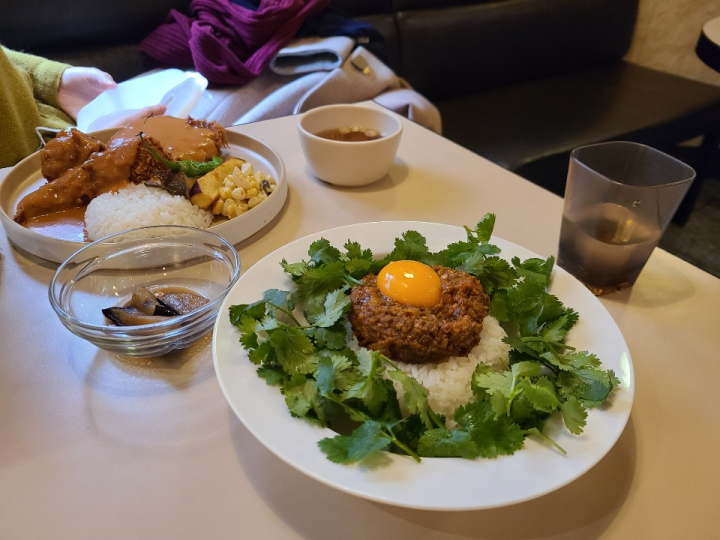 키마카레는 드라이 카레라고, 수분기가 없는 카레입니다. 살짝 매콤해서 아주 맛있었습니다. 매콤함에 고수가 주는 상쾌함이 아주 잘 어울렸습니다.