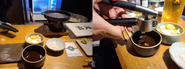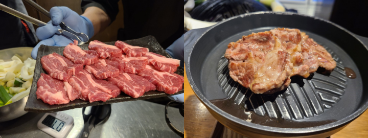 야스노야지로는 간장소스, 와사비, 히말라야 핑크소금, 양배추 피클이 기본적으로 세팅됩니다. 또한 고기를 계속 따뜻하게 유지할 수 있도록, 미니 화로도 앞에 올려주시는데요. 이 점이 매우 좋았습니다.